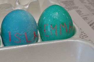 Dyeing Easter eggs this year was so much fun! Isla was totally into it which made it wonderful experience. Every part of it thrilled her which was fun to watch. She loved lowering the eggs into the water on the spoon "elevator" and then giggled with glee when they would emerge a completely different color. She loved the yellow eggs best (may go hand in hand with her love of Ducky?) Anyway, let me back up a bit. This year, I finally identified that dyeing eggs really stresses me out. I'm serious. I am too much of a perfectionist I guess and there is no perfection when it comes to dyeing eggs. Instead, there lots of asymmetry and eggs that reject color in certain spots for whatever reason. And I don't handle either of those things very well (or at least haven't in the past). Silly, I know, but the first step is admitting it. Anyhow, the beauty this year, was that Isla was did an amazing job and I was freed of the responsibility of making beautiful eggs. Win-win!
